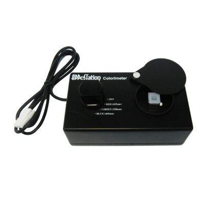 The Colorimeter was used to measure the amount of light transmitted through a series of calibrated solutions. A calibration curve can thereby be obtained to determine the concentration of an unknown solution.